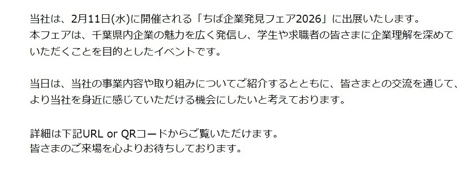 2月11日(水)「ちば企業発見フェア2026」出展のお知らせ